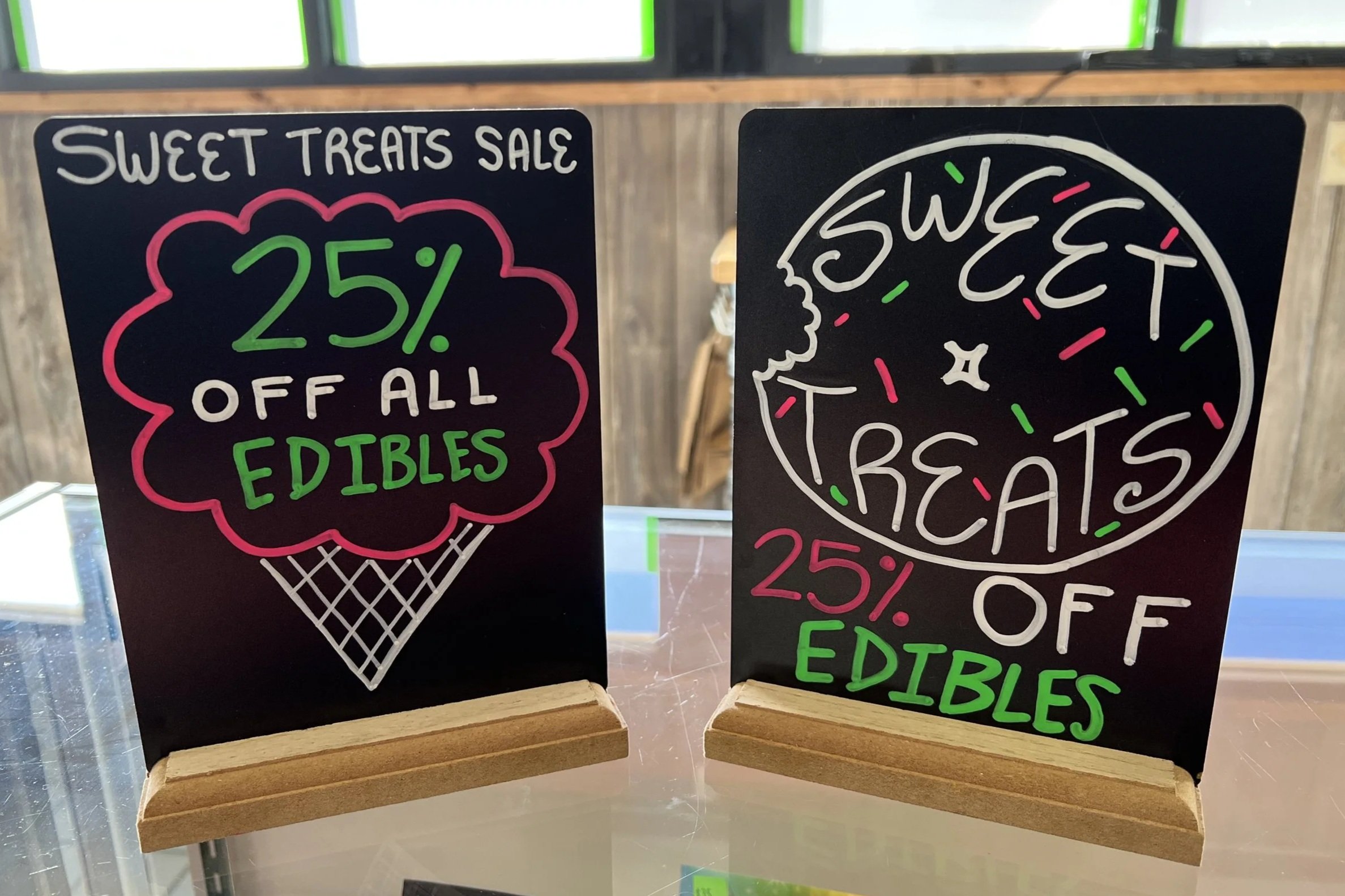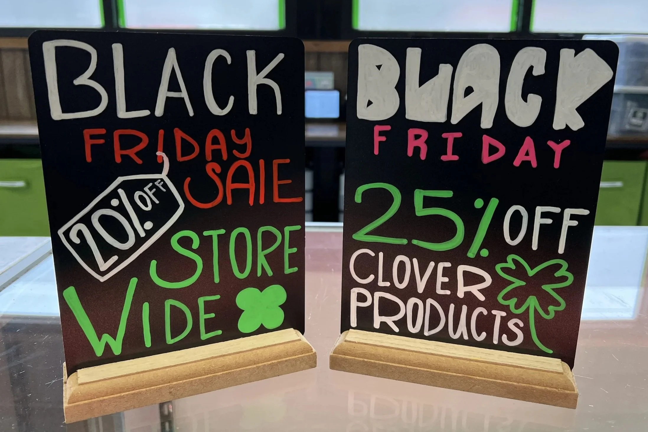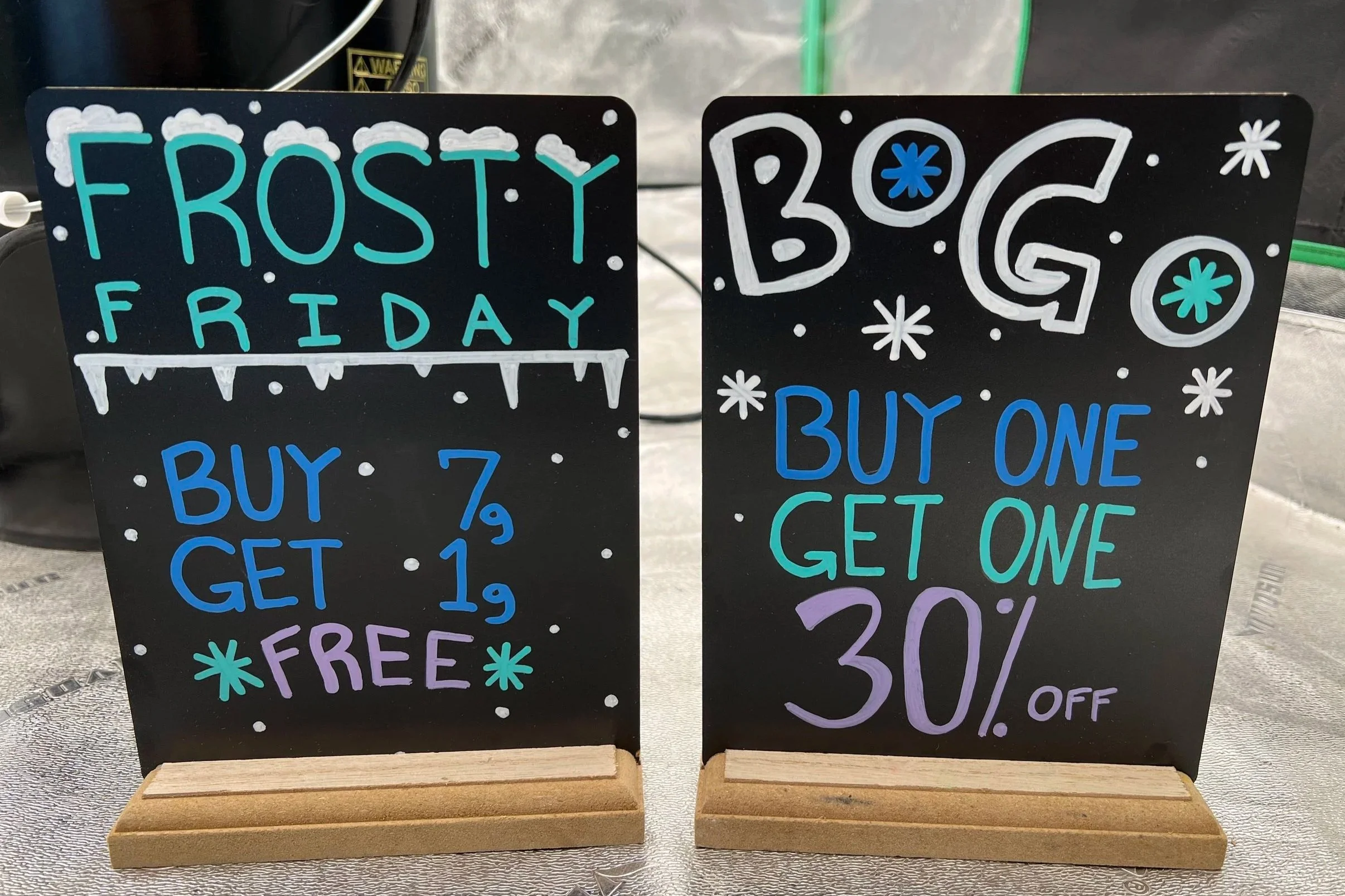 Chalk sale sign designs for a local store. Changed based on what was discounted. Made with Posca paint chalk pens.